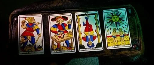 How exactly does the reading work? It is pretty simple actually: Dr. Shreck holds the deck up for the subject to tap three times, subsequently shuffles the deck, then draws four cards. While the four cards suggest a possible fate, a fifth hints at knowledge that might change the future if change is possible—and that’s a big if.