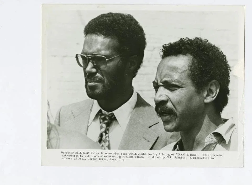Director Bill Gunn and actor Duane Jones on the set of Gangja & Hess. Photo courtesy of Schomburg Center for Research in Black Culture/NYPL, Photographs and Prints Division
