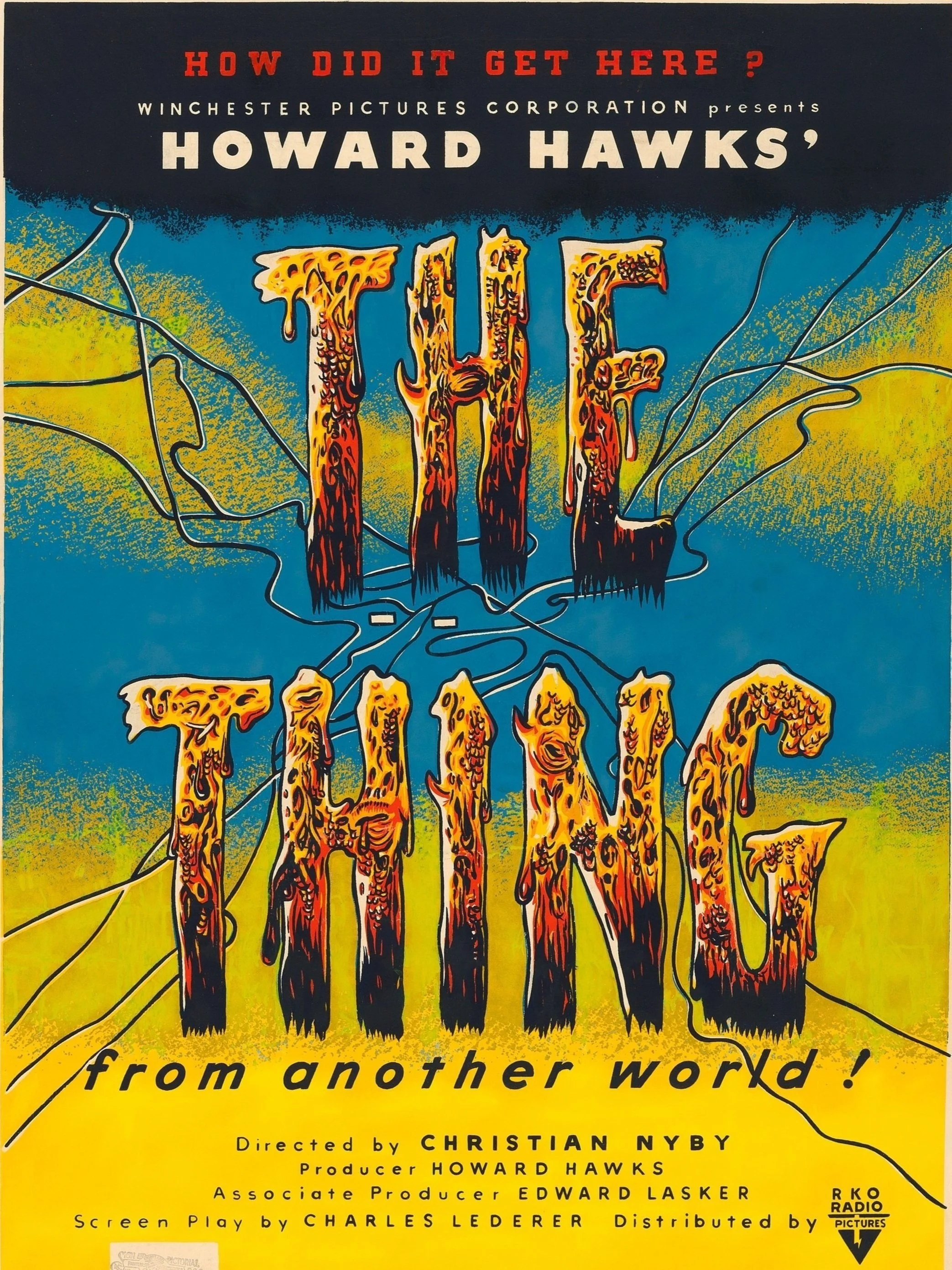 With its theatrical release in the spring of 1951, The Thing from Another World was part of an early wave of science fiction cinema in the 1950s. It was a decade positively loaded with atomic age tales of giant bugs, robots, rampaging monsters, and early space exploration. Arguably the most emblematic of 1950s sci-fi films were those involving humanity’s encounters with alien life forms. Of this subgenre, the alien invasion trope was most prevalent. It should be noted that the decade included a handful of films that bucked this trend in very interesting ways; we will delve into those movies at later date.