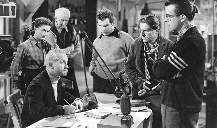 The Thing from Another World is a crackerjack of a film based—very loosely from what I understand—on the 1938 novella Who Goes There? by John. W. Campbell, Jr. With a run time of under 90 minutes, it falls within that sweet spot for many classic genre films, requiring a modest time commitment. The film features zippy and efficient story telling with much of the enjoyment coming from its affable cast. Exposition is delivered via bursts of lively repartee between characters, counterbalancing the dire situation they find themselves in. I was very quick to warm up to this group.
